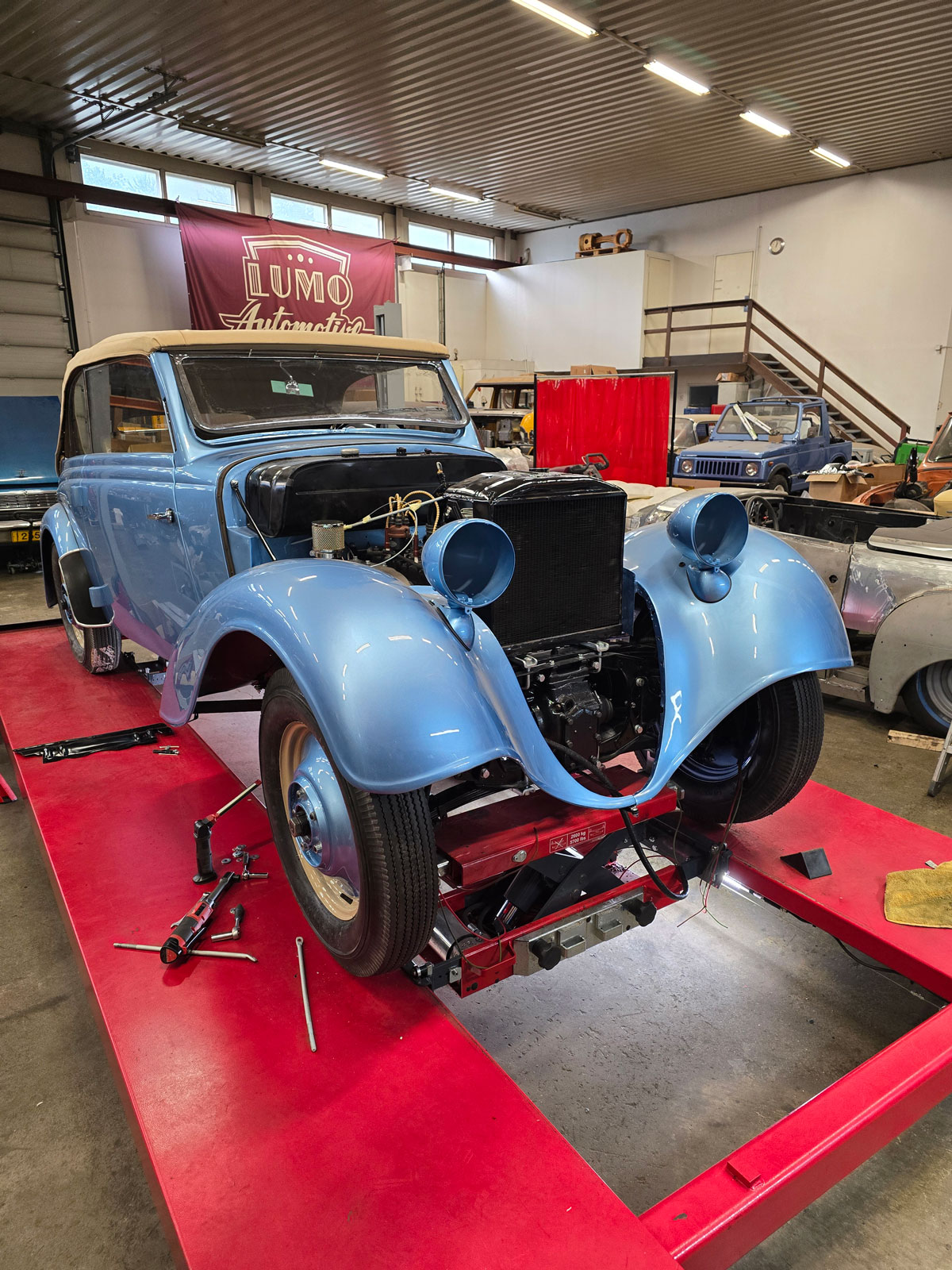 Adler on ollut niin kutsuttu avaimet käteen -projekti, eli auto entisöidään täydellisesti ja luovutetaan asiakkaalle katsastettuna. Adleriin ei ole enää saatavilla läheskään kaikkia osia markkinoilta, joten projektiin on kuulunut paljon osien valmistusta. Muun muassa puuosat on valmistettu alkuperäisen kaltaisena.