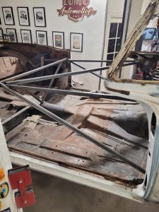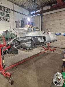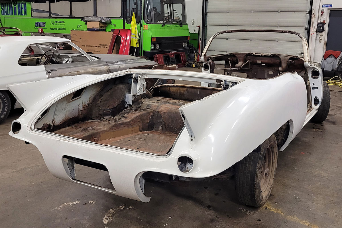 Cadillaciin on aluksi tehty kattavat korityöt. Auton pohja on skannattu, ja tämän perusteella on valmistettu kokonaan uudet pohjapellit, jotka vastaavat täsmälleen alkuperäisiä.  Projekti laajentui myöhemmin täydelliseksi entisöinniksi.