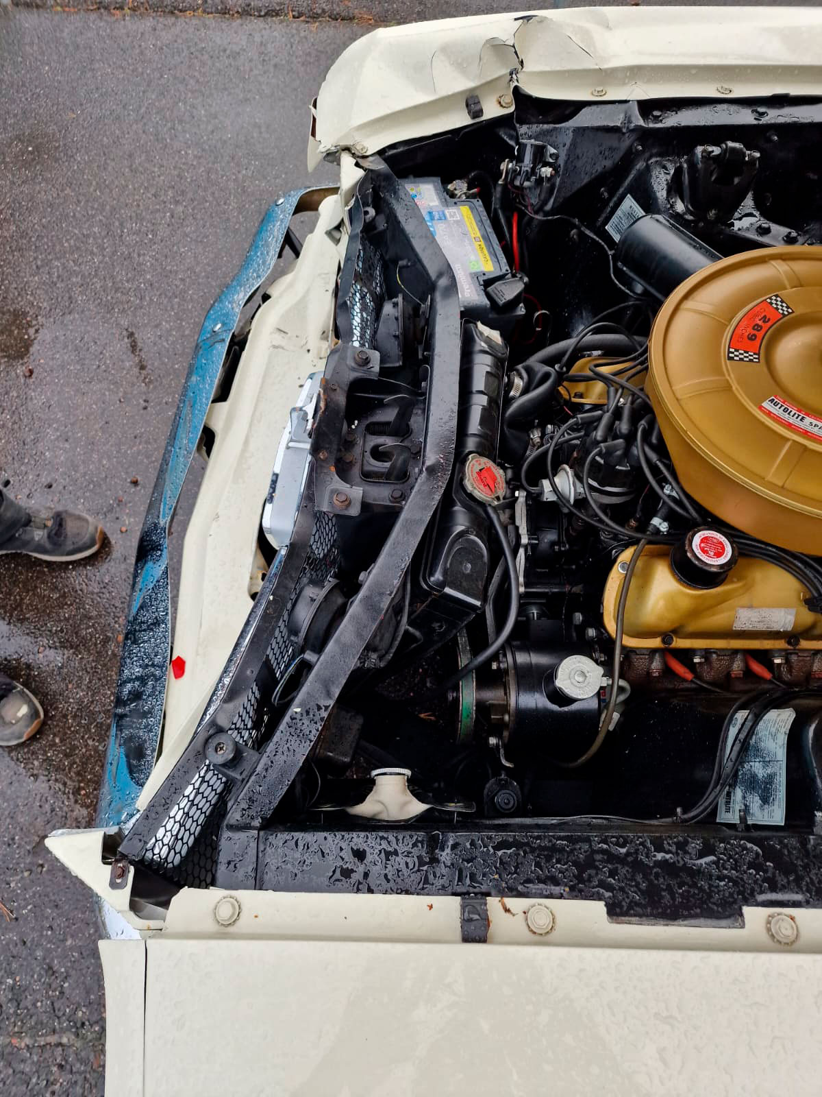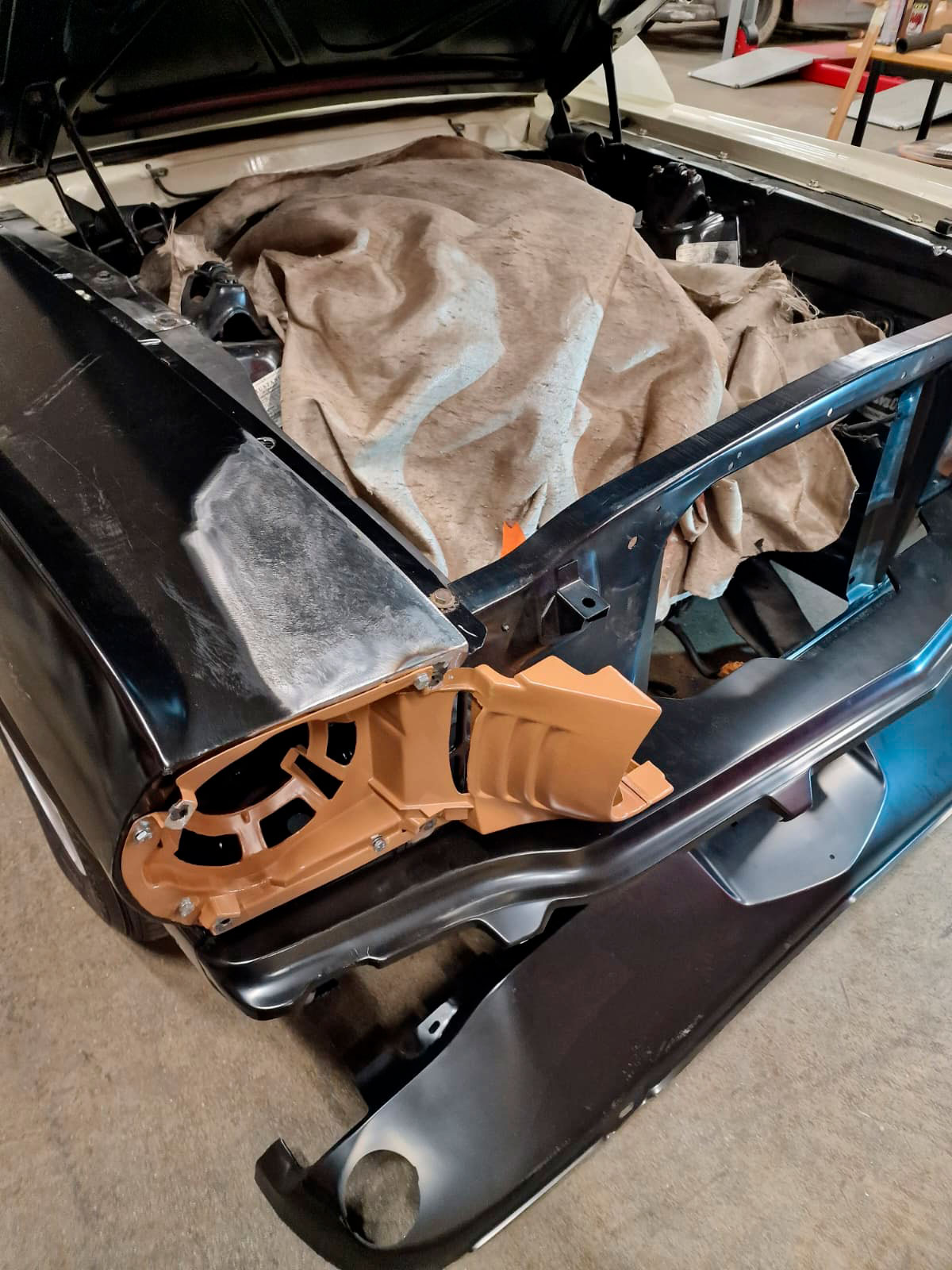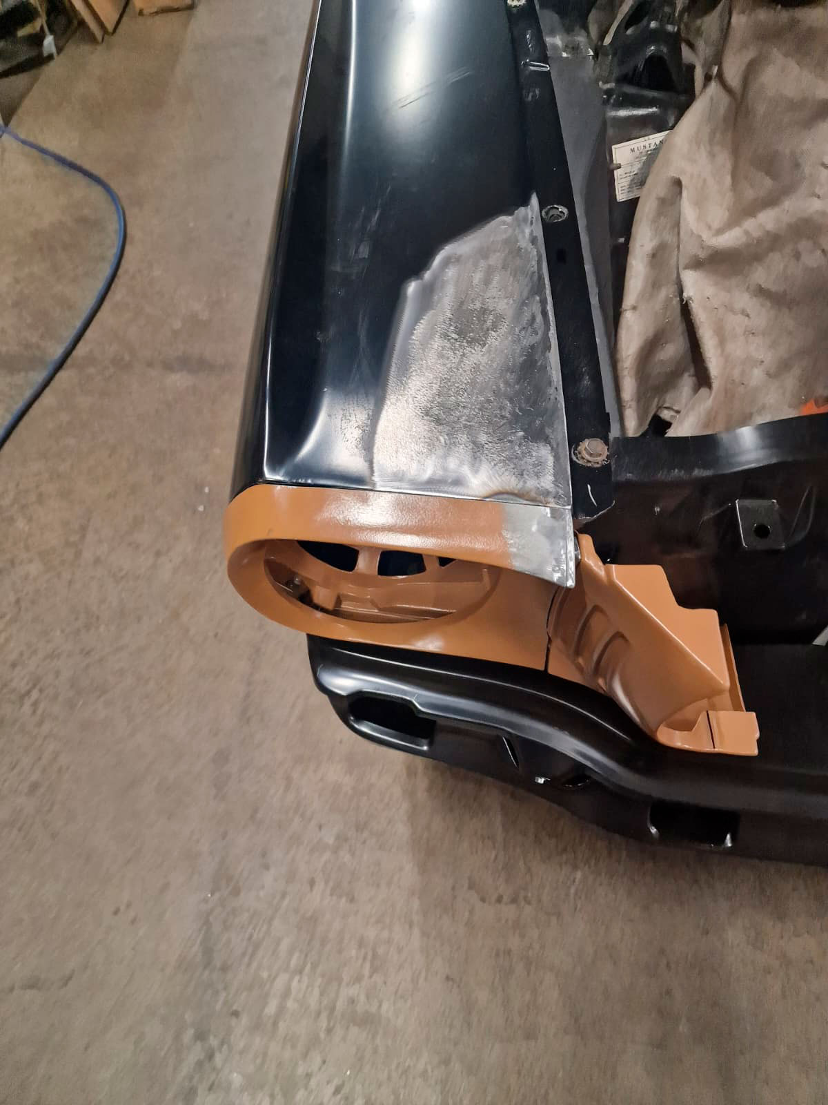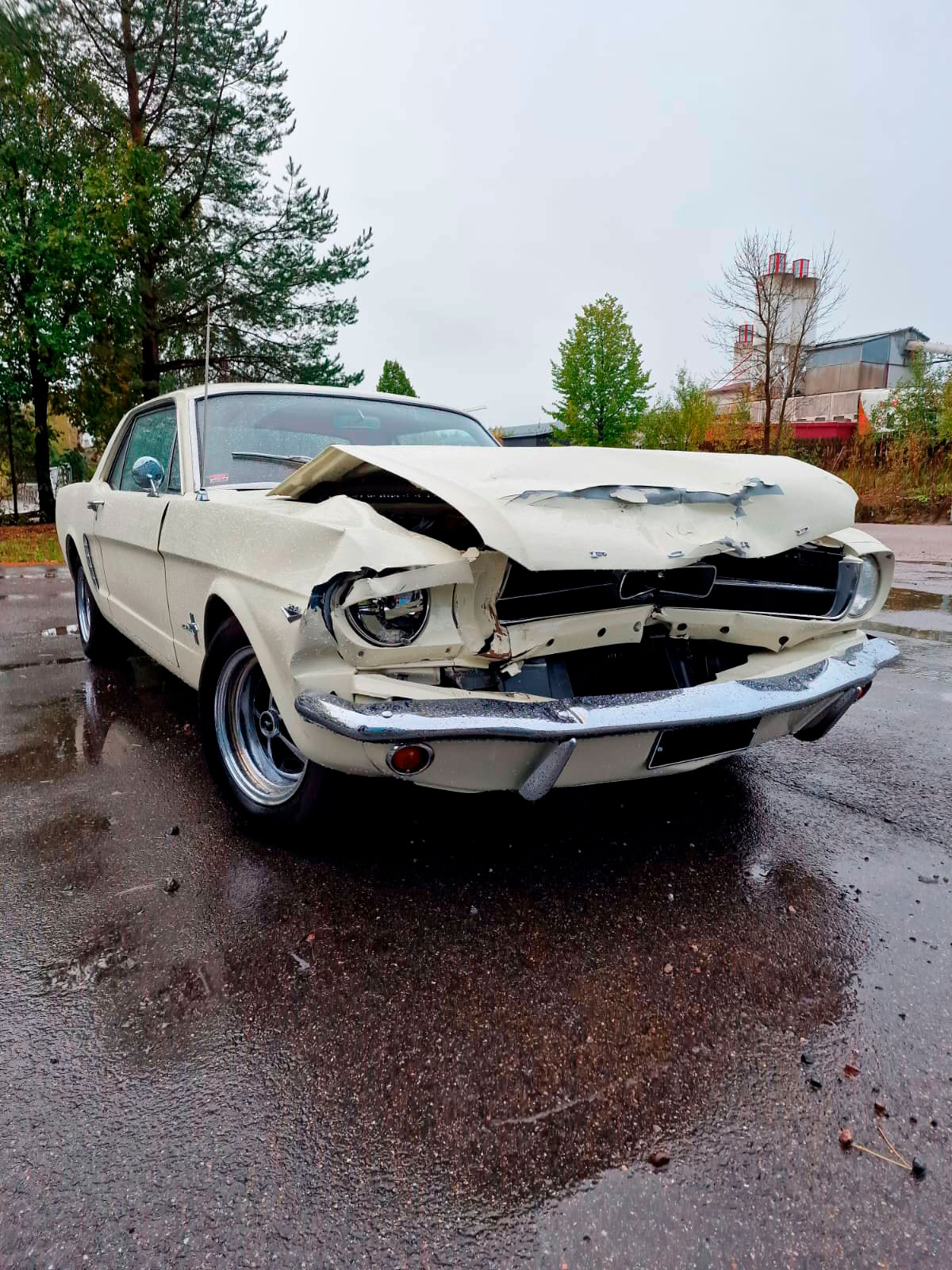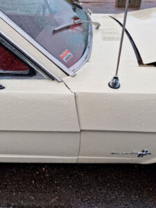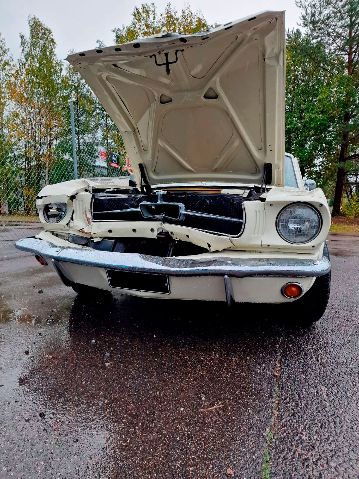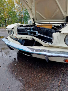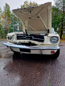 Tämä projekti piti sisällään keulakolaroidun Mustangin vauriokorjaukset. Uudet korin osat sovitettiin huolellisesti paikoilleen. Tämän jälkeen oli vuorossa maalaus. Maalausprosessissa aluksi värimalli skannataan, minkä perusteella teetetään tismalleen oikeansävyiset maalit. Koemaalauksella vielä varmistetaan sävyjen korrektius, ja vasta tämän jälkeen suoritetaan lopullinen maalausprosessi.